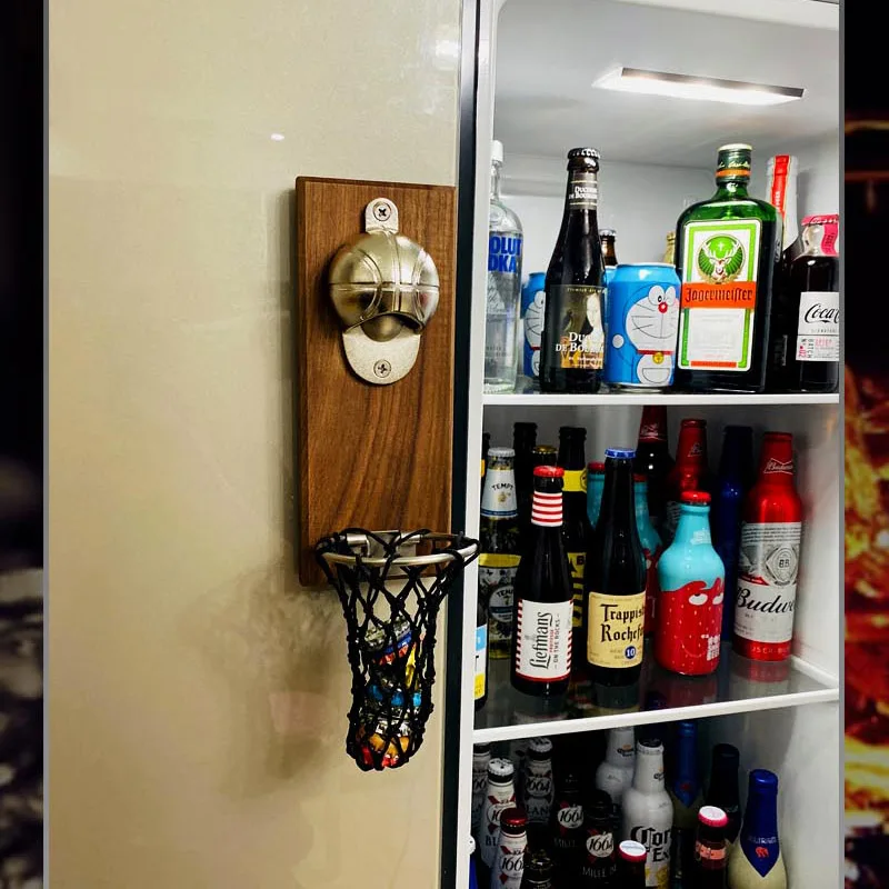 The basketball bottle opener can be easily installed on refrigerator by the magnetic principle.