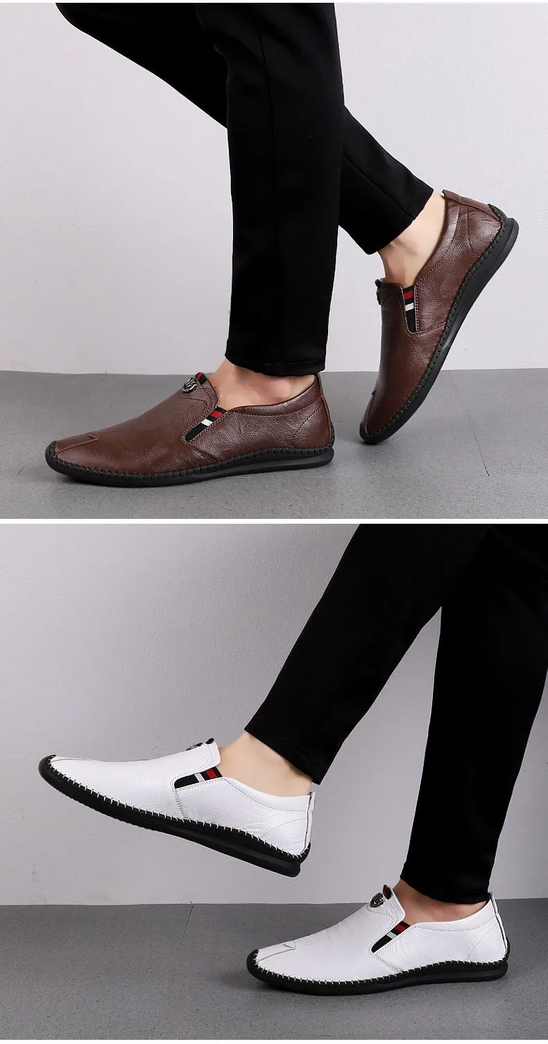 Luxury Brand Men Shoes Casual Cow Leather Rubber Men Shoes Loafers Slip on Breathable Adult Mens Flat Shoes Genuine Leather 2020