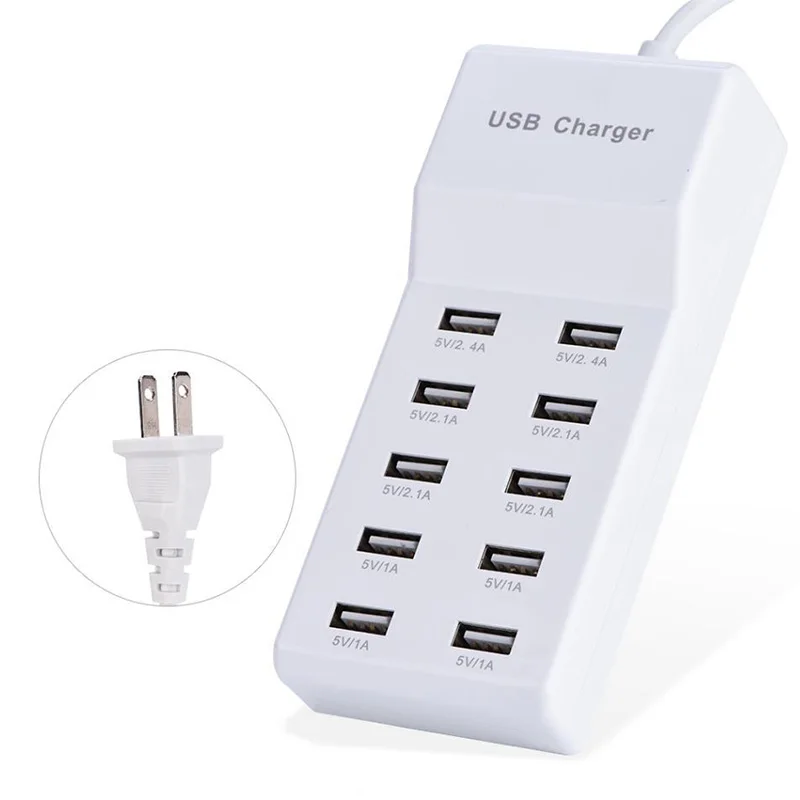 USB Charger with Rapid Charging Auto Detect Technology Safety Guaranteed 10-Port Family-Sized Smart USB Ports,US Plug