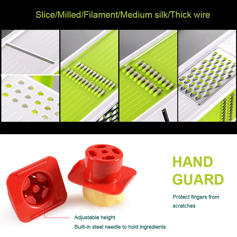 Kitchen Gadgets 5 in 1 Vegetable Fruit Cutter Manual Potato Slicer Stainless Steel Blade Carrot Onion Grater Cheese Vegetable Slicer Kitchen Tool