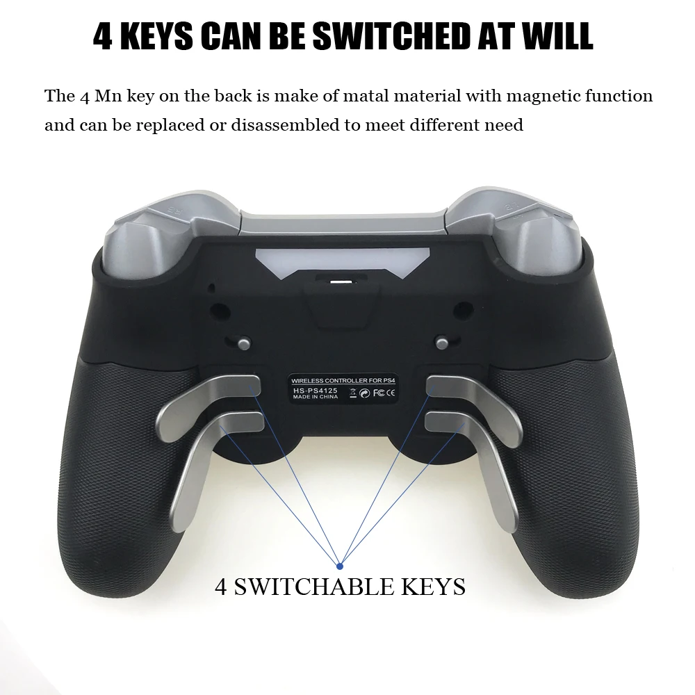 The Custom elite wireless PS4 controller is specially designed for Sony PlayStation 4 PS4/PS4 slim/PS4 pro console, and it also can be switch to working with PS3 playstaion3 console via cable connect